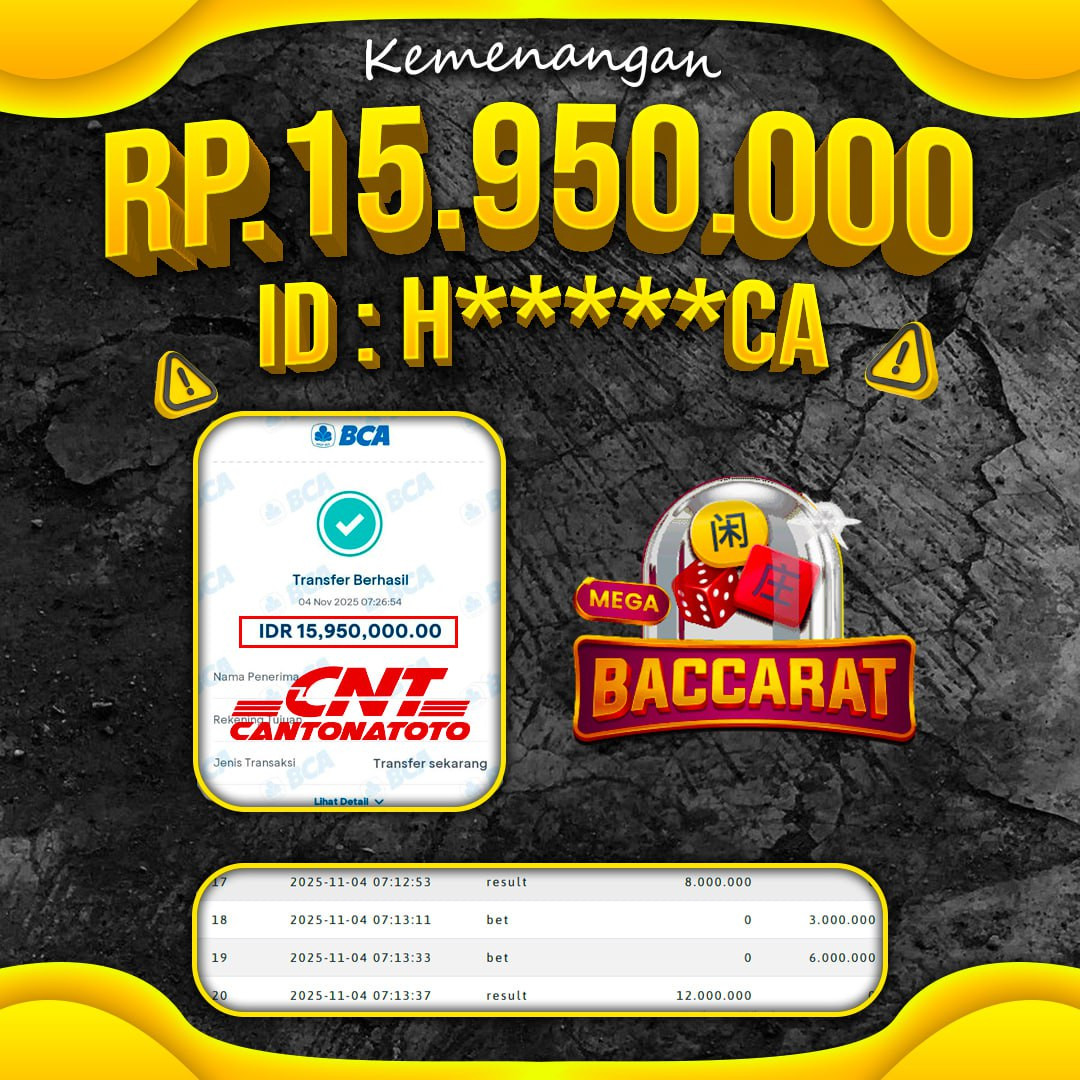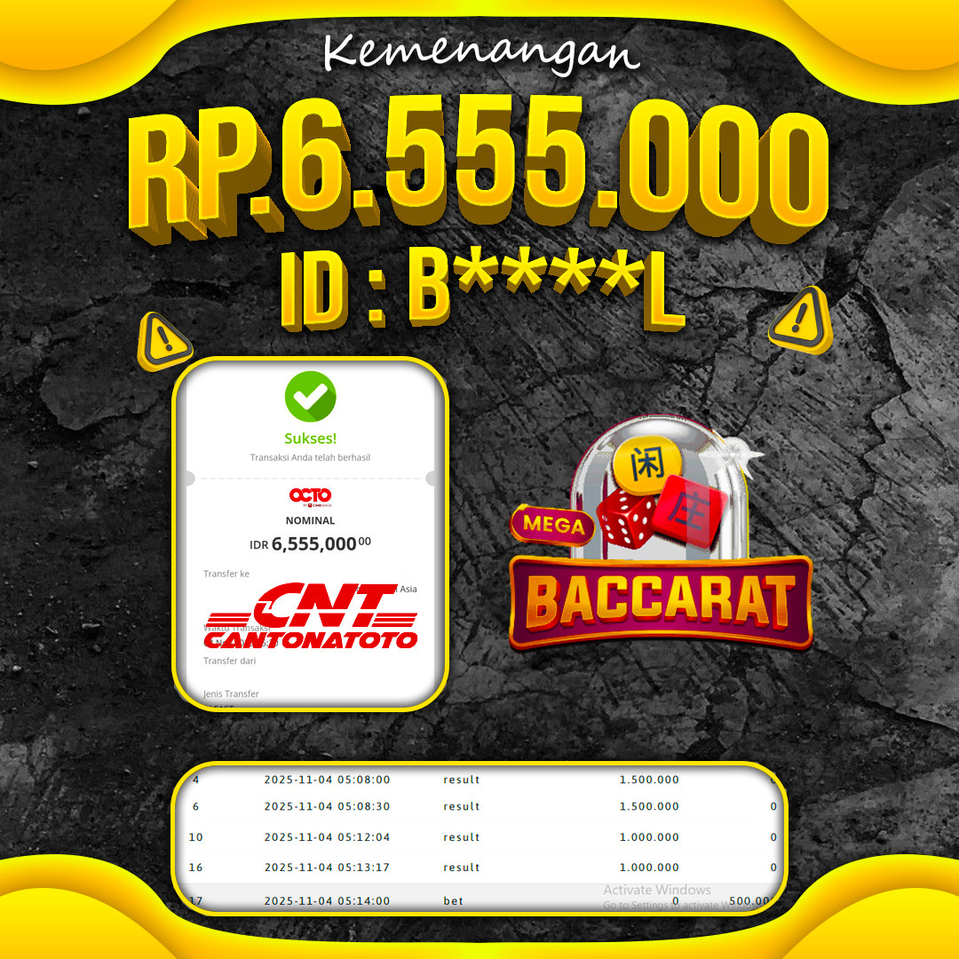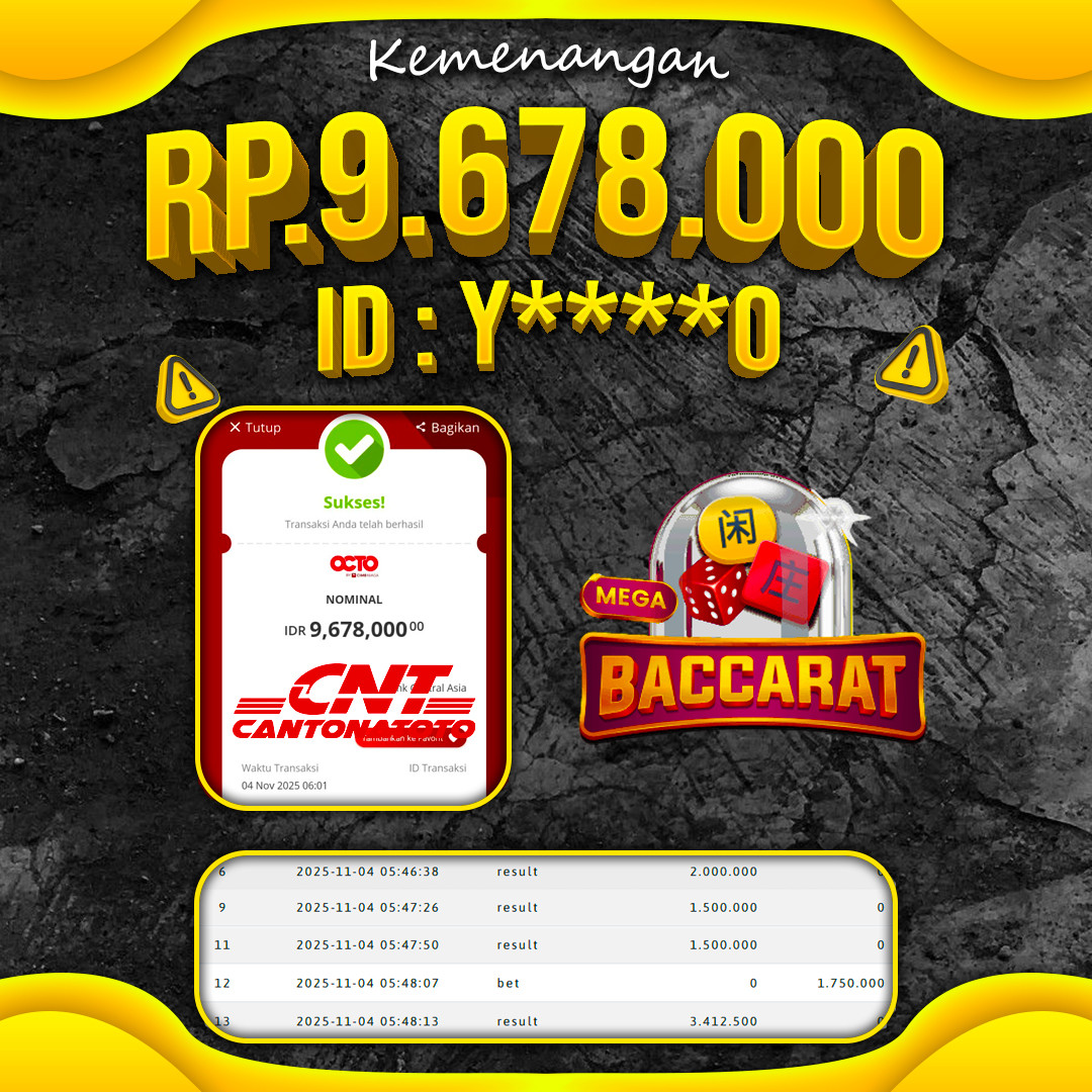 MEGA JACKPOT! ???? UANG MASUK DERAS, MOOD LANGSUNG GASSS! ???????? ❤️SEL4M4T KEPADA M3MB3R S3TIA CANTONATOTO ????TANGGAL : 4 NOVEMBER 2025 ????USER ID : Y****0 ????B0 : CNTT ????M3N4NG : SPEED BACCARAT ????RP. 9.678.000