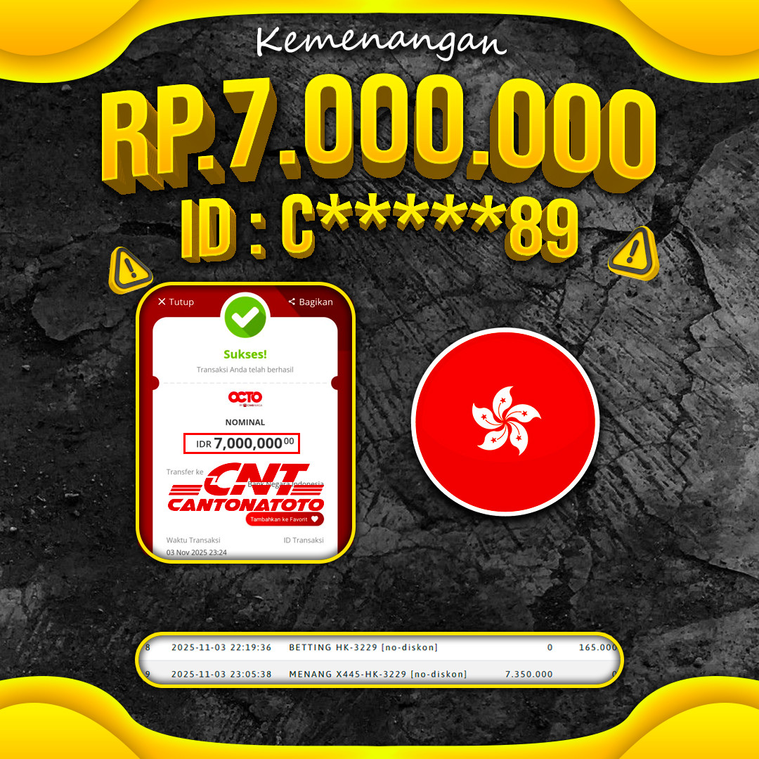 SALDO MENGGELEMBUNG, SENYUM MENGEMBANG! ???????? HARI INI GILIRAN KITA MENANG BESAR! ❤️SEL4M4T KEPADA M3MB3R S3TIA CANTONATOTO ????TANGGAL : 3 NOVEMBER 2025 ????USER ID : C*****89 ????B0 : CNTT ????M3N4NG : MENANG X445-HK-3229 [no-diskon] ????RP. 7.000.000